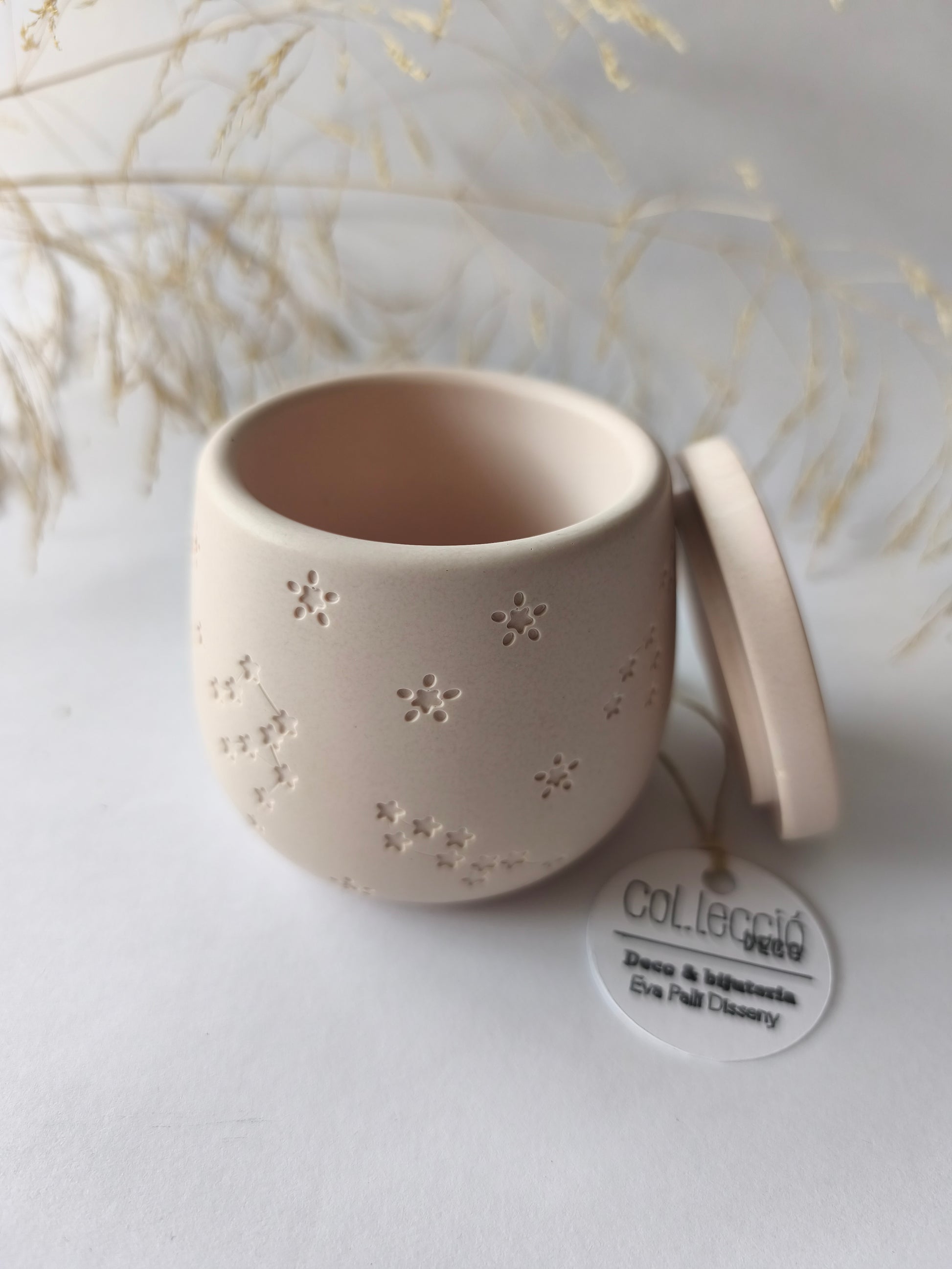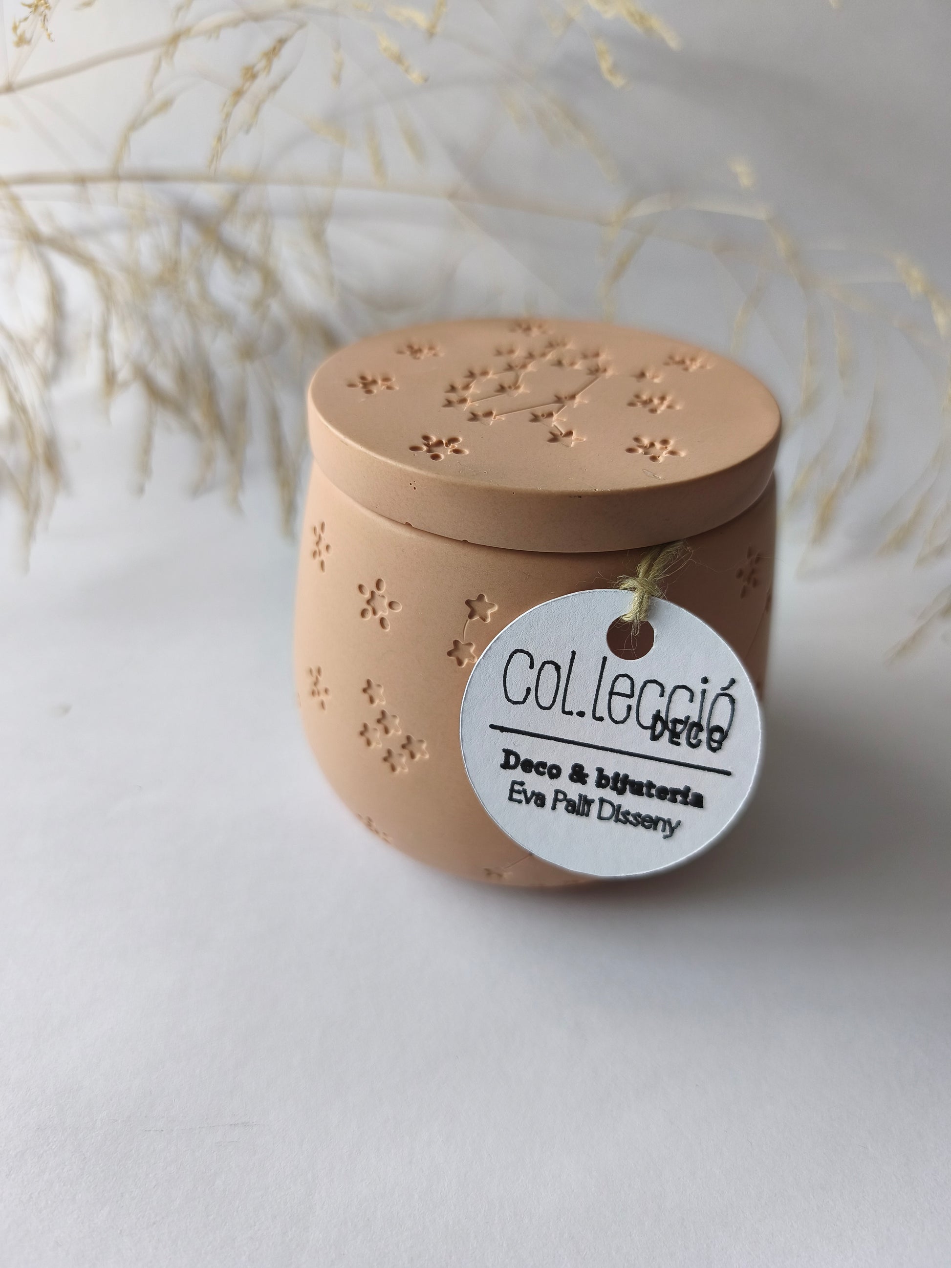 Joyero hecho a mano con resina acrílica, con un delicado relieve decorativo insperado en formas orgànicas y estrellas, que aporta textura y sutileza al diseño. Pensado para guardar pequeñas piezas de bisutería, combina funcionalidad y valor decorativo.