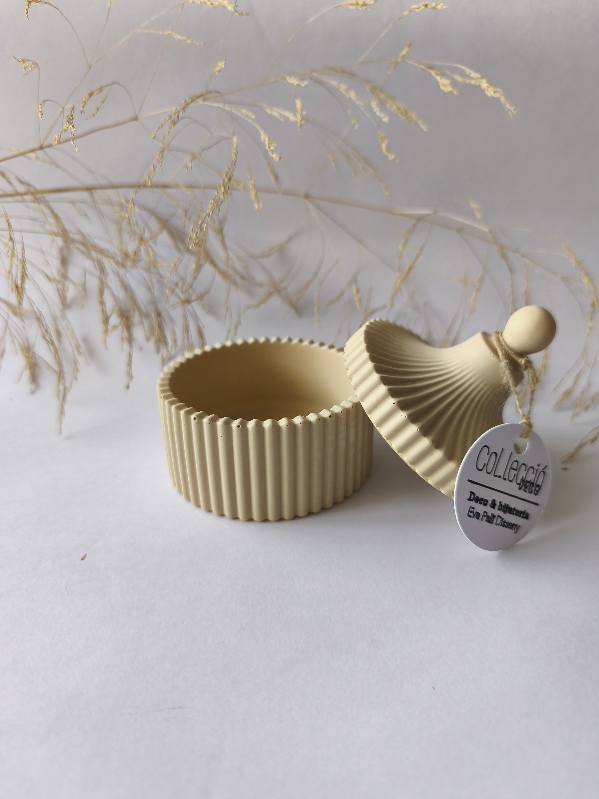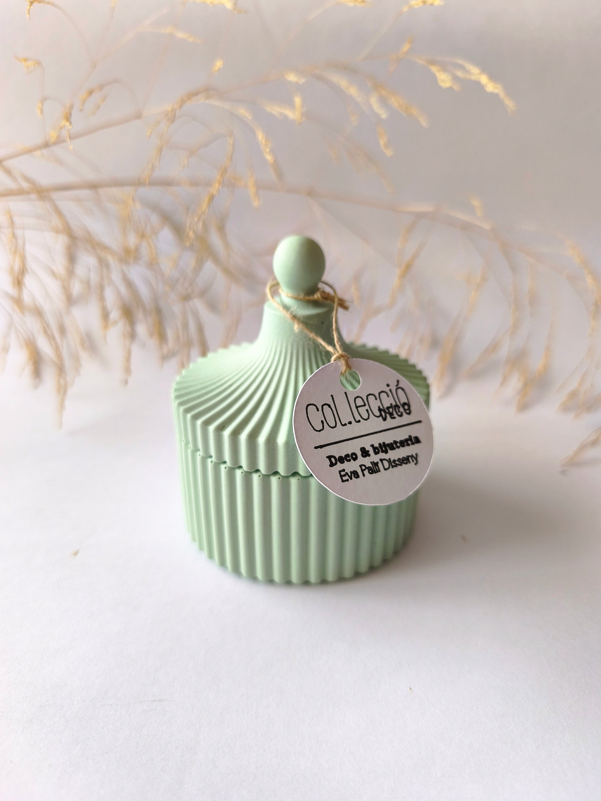 Joyero hecho a mano con resina acrílica, diseñado para guardar y protejer pequeñas piezas de bisutería con delicadeza y estilo. Su forma elegante y la textura acanalada lo convierten en un objeto funcional y decorativo, ideal para acompañar joyas creadas artesanalmente.